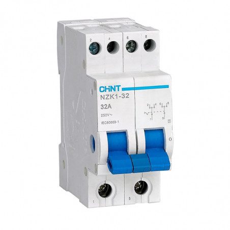 Conmutador de red 1P, 1-0-2 riel din 32A op. Manual