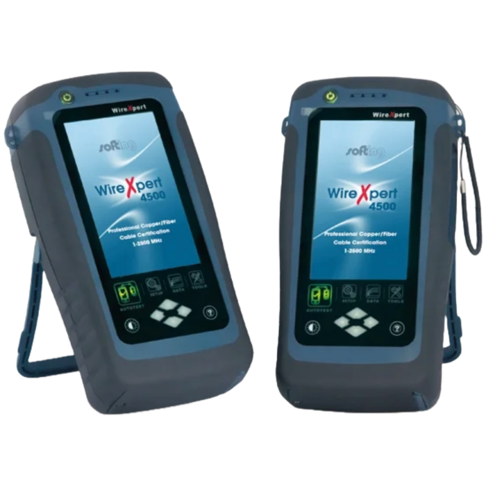 Es el certificador de red SOFTING WireXpert 4500, preparado para cables Cat5e, Cat6, Cat6A, Clase F, Clase FA, Cat8, Fibra Optica Multimodo, Monomodo y enlaces MPO. Así mismo, cuenta con los módulos correspondientes para la certificacion en enlace permanente y canal, validando velocidad/ pérdida/longitud, parámetros del TIER I, en redes de fibra óptica y par trenzado de cobre.